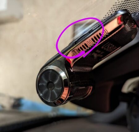 接続したまま数日間固定せずに稼働させてみてちゃんと機能していることを確認したのでカメラ部を付属の両面テープでフロントガラス上部へ固定しました。