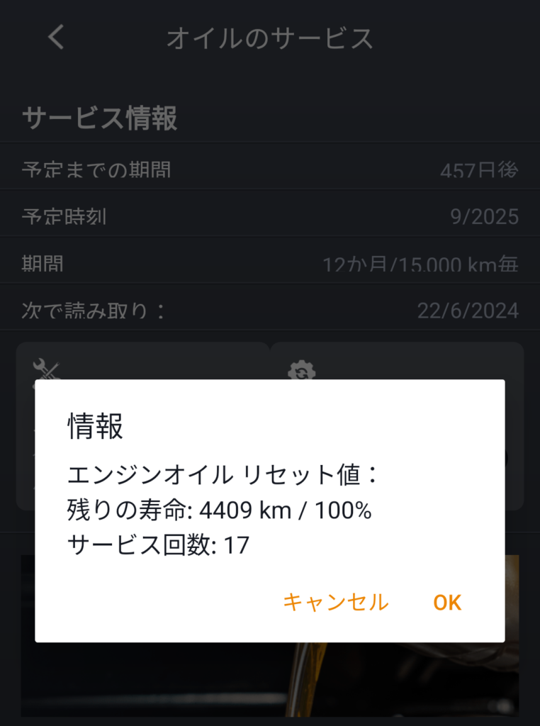 OBDポートに繋いだBluetoothアダプターとスマホを接続してメンテナンスリセットです。