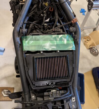Tiger800のエアクリーナーへのアクセスはすっごく面倒です。