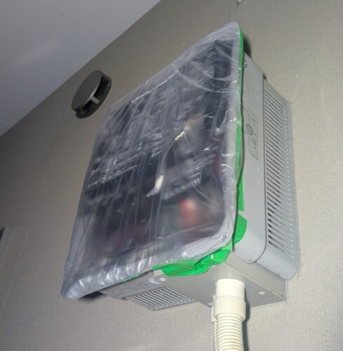 どうせこのパワコンは交換になると思いますが、雨予報もあったので家にあった大きなゴミ袋で簡単に養生しておきました。