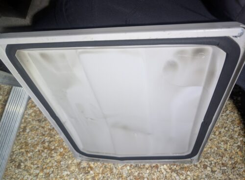 パネルが取れた内部、黒い凹んでいるように見えるところは薄いプラスチックで、大きな損傷はみられません。