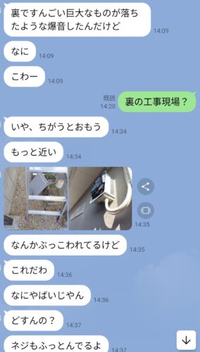 「裏ですんごい巨大なものが落ちたような爆音したんだけど」(原文ママ)